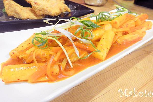 傳說中超受歡迎的辣炒年糕,長條狀的年糕炒了特調的辣椒湯汁與洋蔥,點綴著紅蘿蔔和蔥絲,吃辣的朋友儘管點選,一入口感受微辣的滋味,咬著咬著有種回辣的逆襲,越吃越辣的快感充斥。